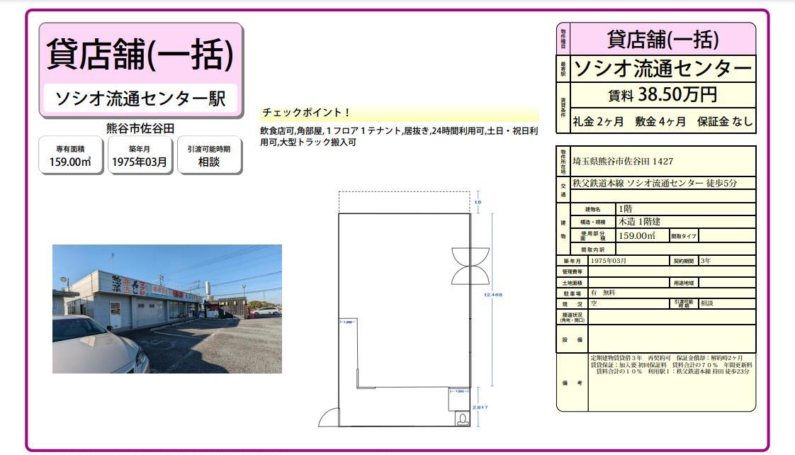 埼玉県熊谷市佐谷田1427 (秩父) 秩父 事務所 詳細データ