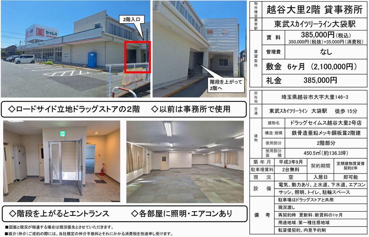 埼玉県越谷市大字大里146-3 (大袋) 大袋 事務所 詳細データ