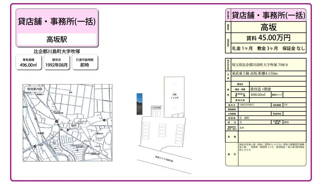 埼玉県比企郡川島町大字吹塚798-9 (高坂) 高坂 事務所 詳細データ