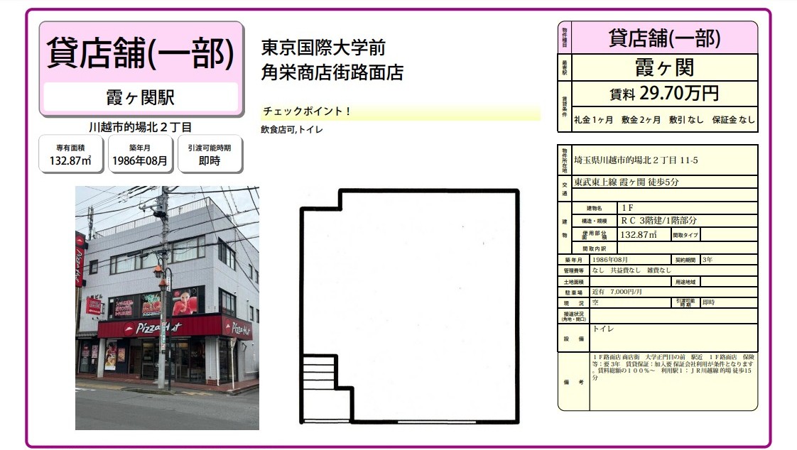 埼玉県川越市的場北2-11-5 (霞ヶ関) 霞ヶ関 事務所 詳細データ