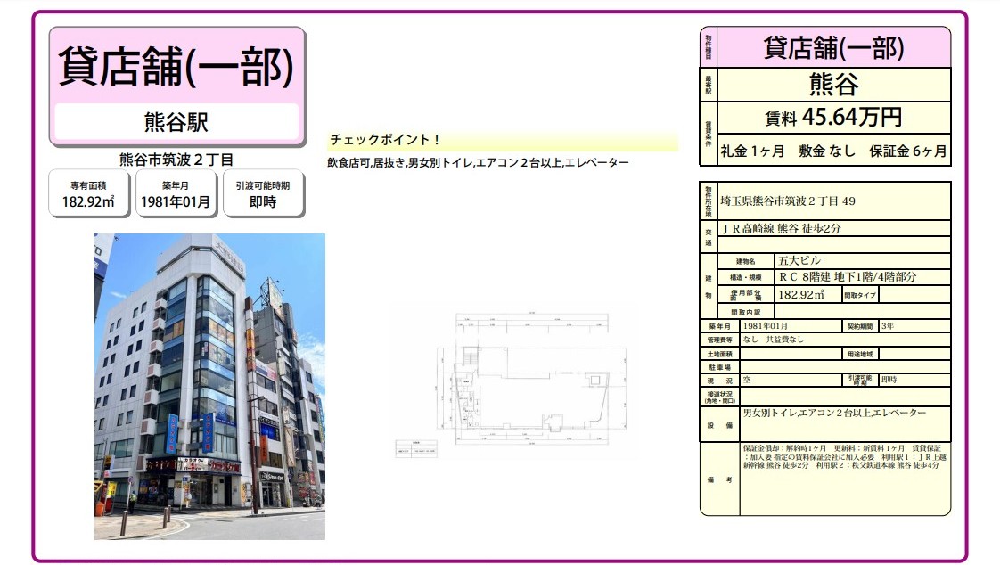 埼玉県熊谷市筑波2-49 (熊谷) 五大ビル 詳細データ