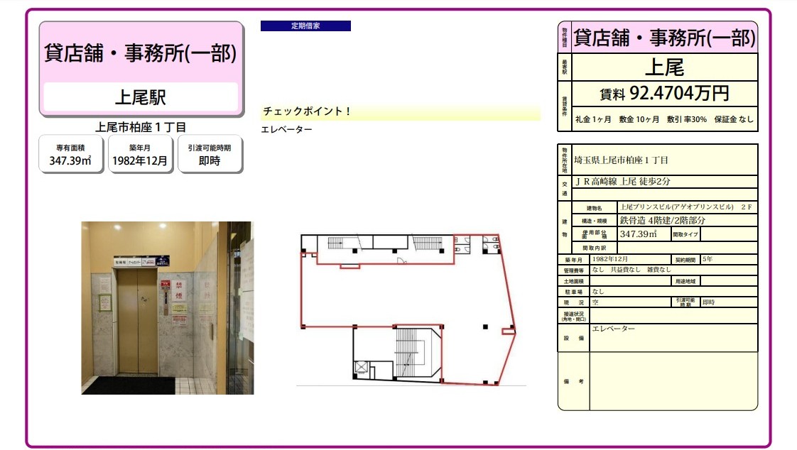 埼玉県上尾市柏座1丁目の賃貸事務所(貸事務所)・貸店舗をお探しのお客様へご案内-このたびは首都圏最大級、貸事務所・貸店舗専門ポータルサイトの埼玉オフィスMOVEをご利用いただき誠に有り難うございます。事務所移転、飲食店開業や新規独立まで賃貸事務所・賃貸オフィス・貸店舗の仲介実績豊富なスタッフがフルサポート致します。埼玉県上尾市柏座1丁目の大型駐車場付貸事務所、重飲食、美容院や居抜き店舗、レンタルオフィスまで貸事務所(賃貸事務所)、貸店舗を簡単に検索できます!埼玉県上尾市柏座1丁目でSOHO、賃貸オフィス、一棟ビルの貸事務所の貸主・オーナー様には無料にて広告掲載いたしますので是非、お問い合わせください。その他、埼玉県上尾市柏座1丁目で貸事務所・貸店舗をお探しのテナント様にはフリーレント、引越しサービスやオフィスレイアウトもアドバイス出来ますのでご相談ください。