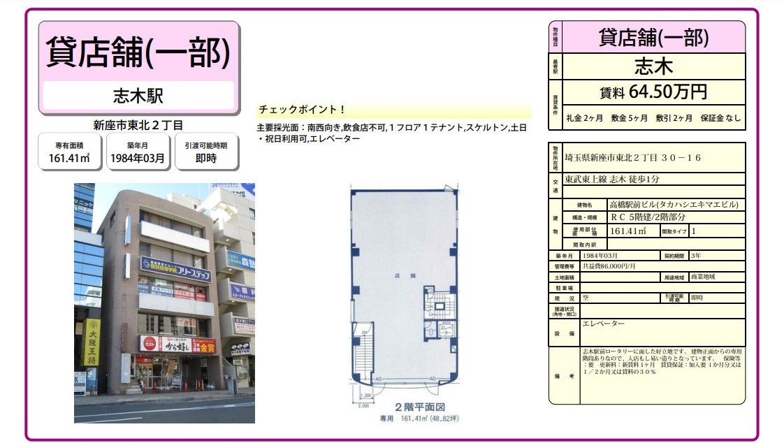 埼玉県新座市東北2-30-16 (志木) 高橋駅前ビル 詳細データ