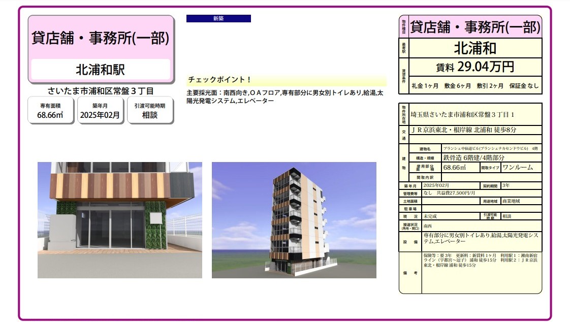 埼玉県 さいたま市浦和区常盤3-1の賃貸事務所(貸事務所)・貸店舗をお探しのお客様へご案内-このたびは首都圏最大級、貸事務所・貸店舗専門ポータルサイトの埼玉オフィスMOVEをご利用いただき誠に有り難うございます。事務所移転、飲食店開業や新規独立まで賃貸事務所・賃貸オフィス・貸店舗の仲介実績豊富なスタッフがフルサポート致します。埼玉県さいたま市浦和区常盤3-1の大型駐車場付貸事務所、重飲食、美容院や居抜き店舗、レンタルオフィスまで貸事務所(賃貸事務所)、貸店舗を簡単に検索できます!埼玉県さいたま市浦和区常盤3-1でSOHO、賃貸オフィス、一棟ビルの貸事務所の貸主・オーナー様には無料にて広告掲載いたしますので是非、お問い合わせください。その他、埼玉県さいたま市浦和区常盤3-1で貸事務所・貸店舗をお探しのテナント様にはフリーレント、引越しサービスやオフィスレイアウトもアドバイス出来ますのでご相談ください。