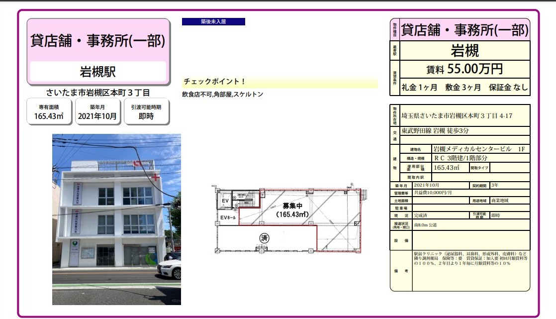 埼玉県さいたま市岩槻区本町3-4-17 (岩槻) 岩槻メディカルセンタービル 詳細データ
