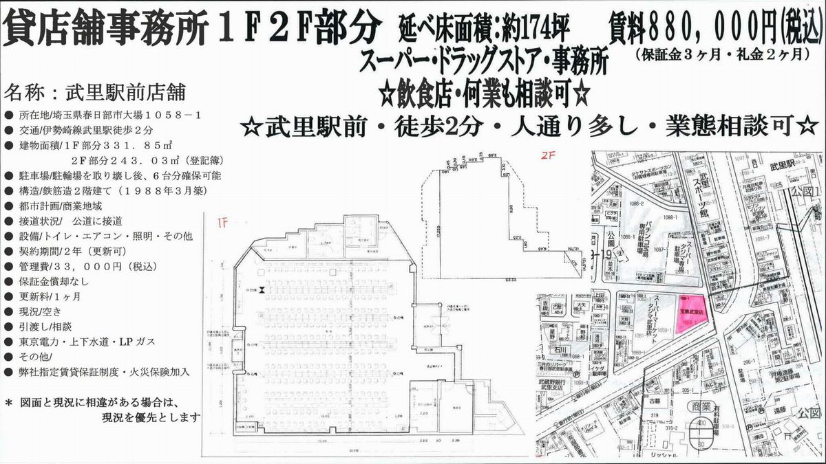 埼玉県春日部市大場1058-1 (武里) 武里駅前 詳細データ