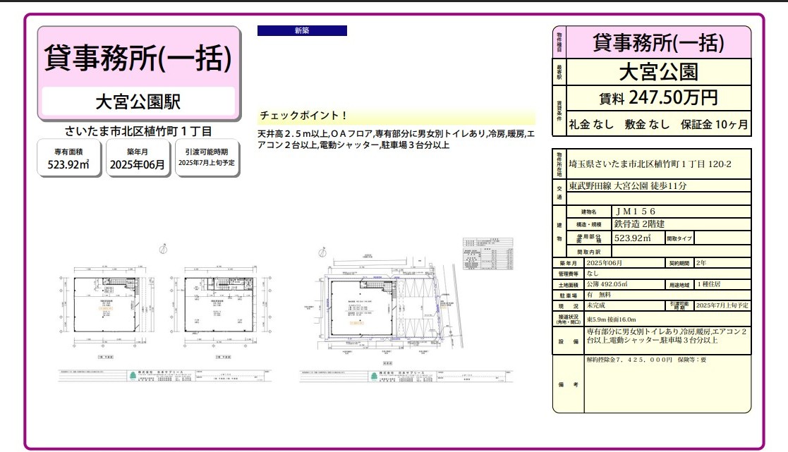 07/21 大型ガレージ付き事務所が深谷で出ました。