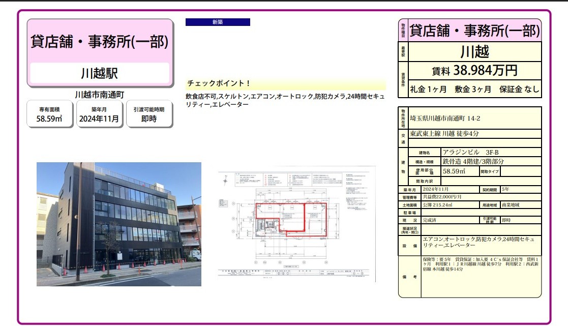 埼玉県川越市南通町14-2 (川越) アラジンビル 詳細データ