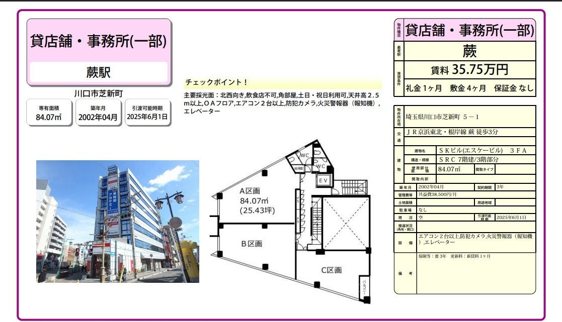 埼玉県川口市芝新町5-1 (蕨) SKビル(エスケービル) 詳細データ