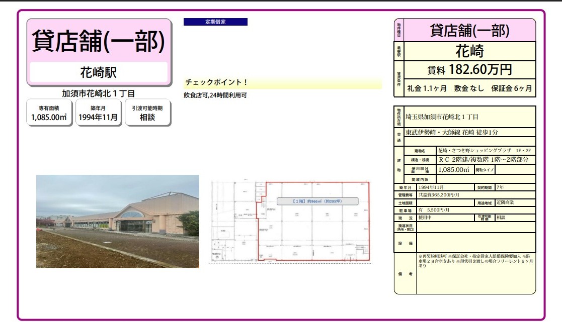 埼玉県加須市花崎北1丁目 (花崎) 花崎・さつき野ショッピングプラザ 詳細データ