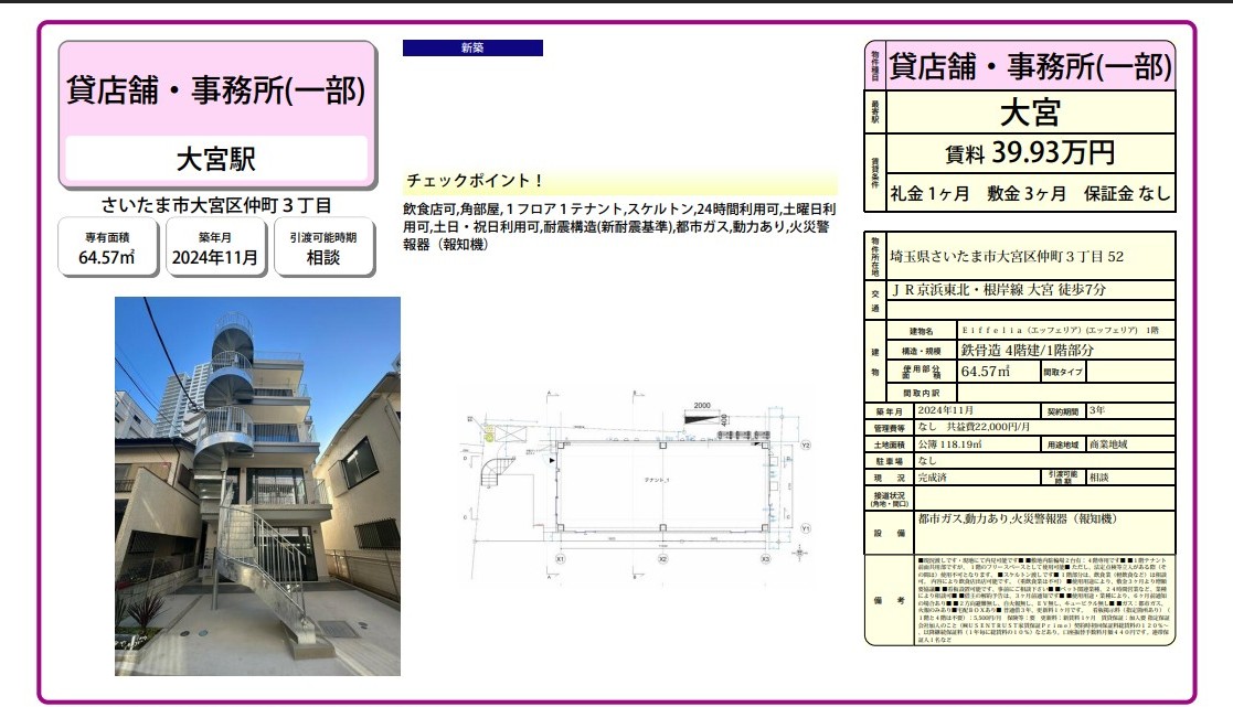 埼玉県さいたま市大宮区仲町3-52 (大宮) Eiffelia(エッフェリア)(エッフェリア) 詳細データ
