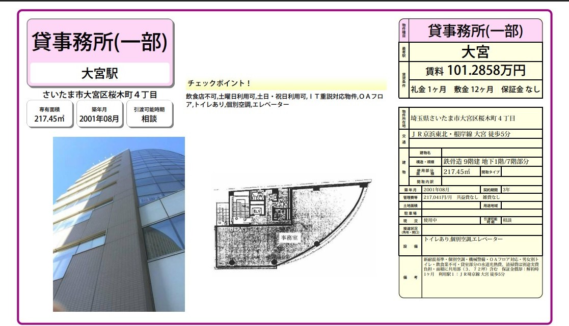 埼玉県さいたま市大宮区桜木町4丁目 (大宮) 大宮 事務所 詳細データ