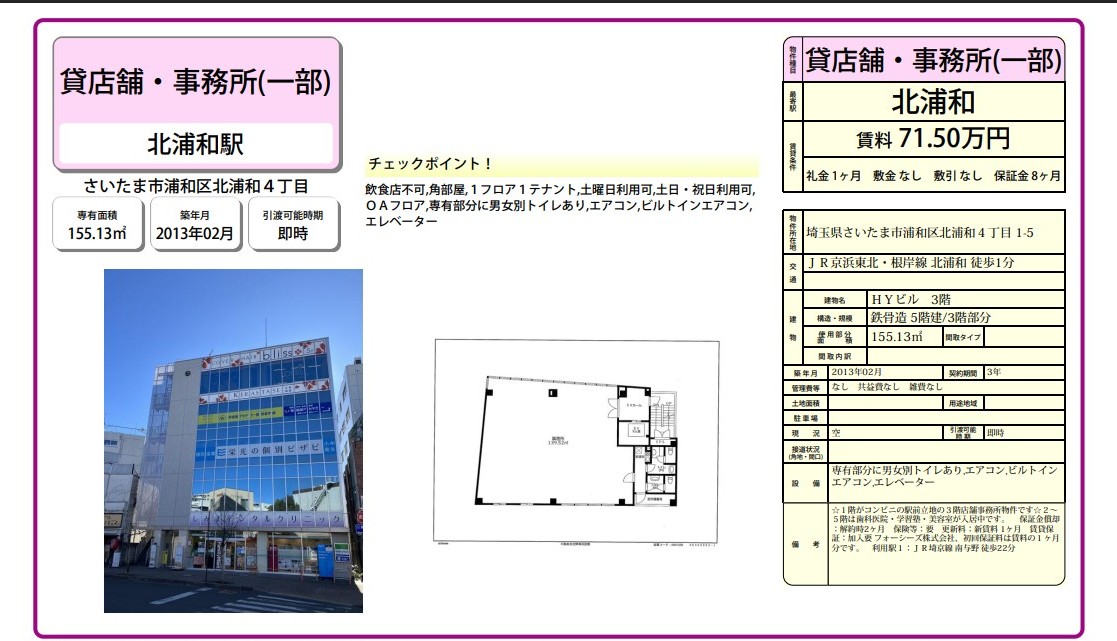 埼玉県さいたま市浦和区北浦和4-1-5 (北浦和) HYビル 詳細データ