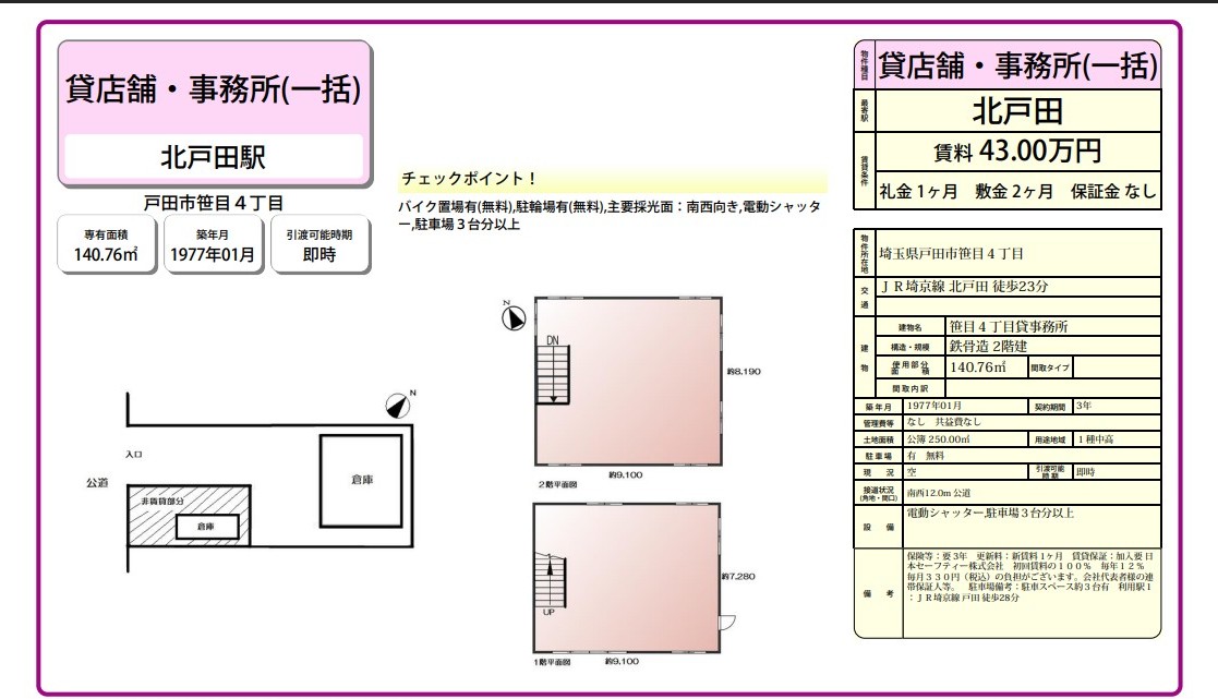 埼玉県戸田市笹目4丁目 (北戸田) 笹目4丁目貸事務所 詳細データ