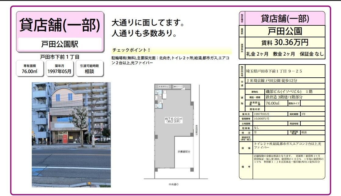 埼玉県戸田市下前1-9-25 (戸田公園) 磯部ビル 詳細データ