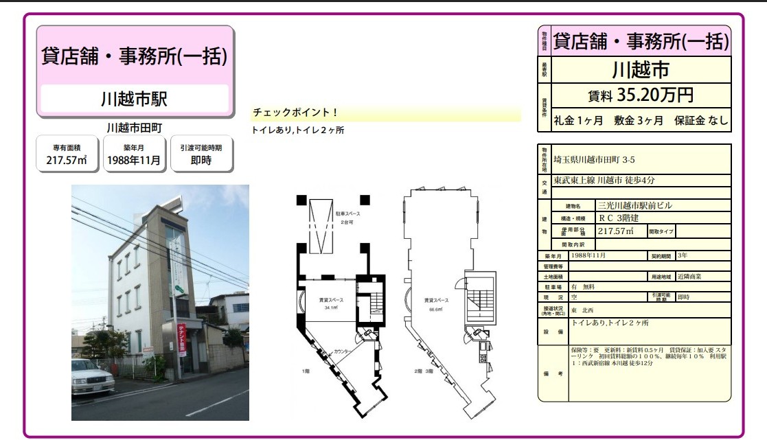 埼玉県川越市田町3-5 (川越市) 三光川越市駅前ビル 詳細データ