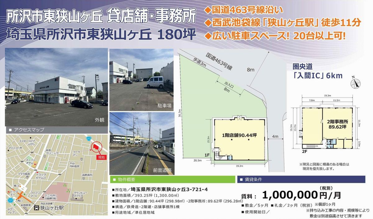 埼玉県所沢市東狭山ケ丘3-721-4 (狭山ヶ丘) 狭山ヶ丘 店舗倉庫 P20台以上! 詳細データ