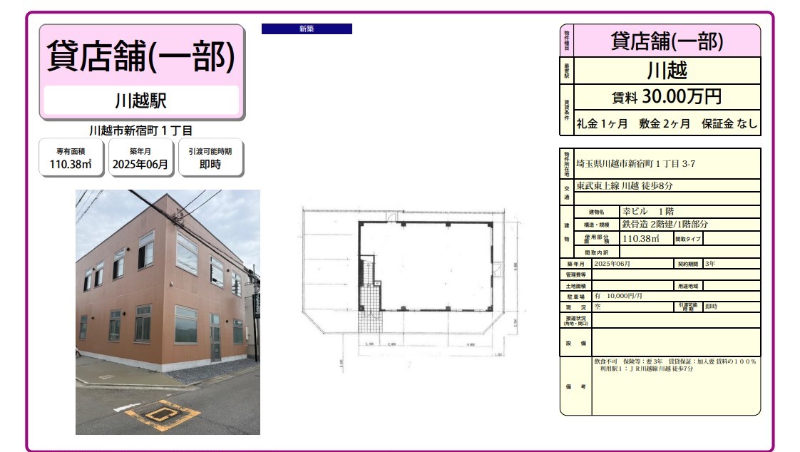 埼玉県川越市新宿町1-3-7 (川越) 幸ビル 詳細データ