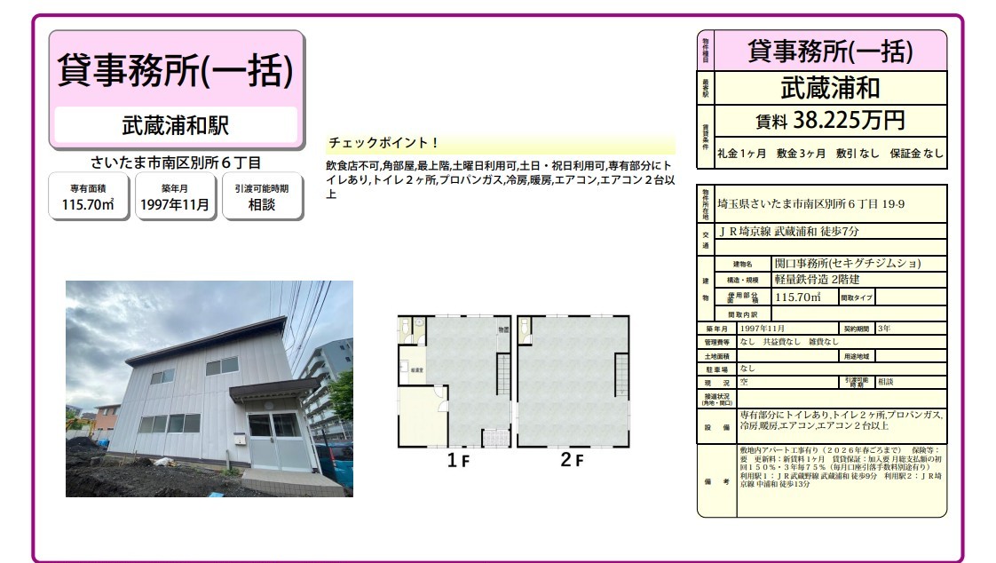 埼玉県さいたま市南区別所6-19-9 (武蔵浦和) 関口事務所(セキグチジムショ) 詳細データ