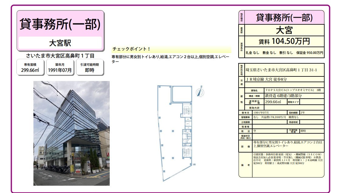 埼玉県さいたま市大宮区高鼻町1-31-1 (大宮) TOPS大宮ビル 詳細データ