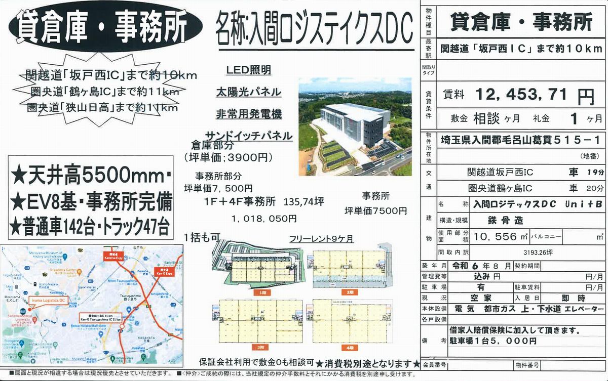 埼玉県入間郡毛呂山町大字葛貫515-1 (毛呂) 入間ロジスティクスunitB 詳細データ