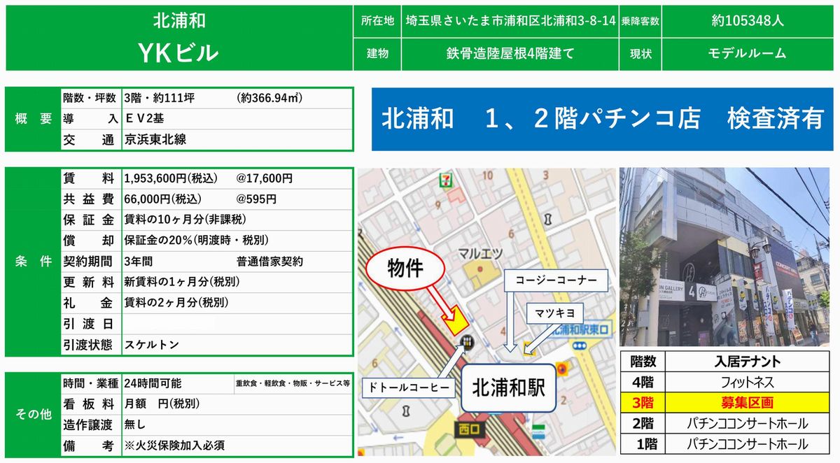 埼玉県さいたま市浦和区北浦和3-8-14 (北浦和) YKビル 詳細データ