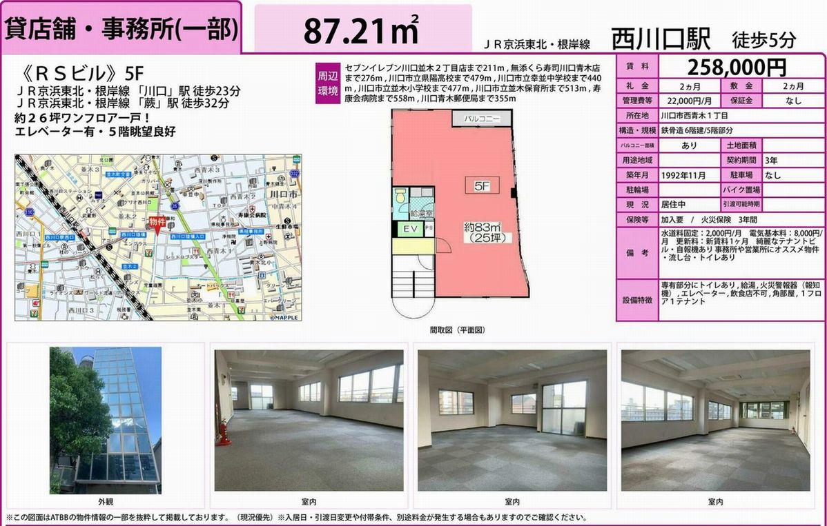 埼玉県川口市西青木1-26-9 (西川口) RSビル 詳細データ