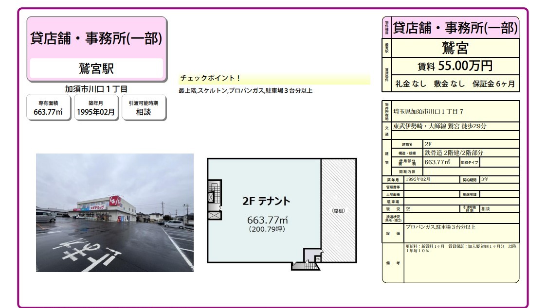 埼玉県加須市川口1-7 (鷲宮) 鷲宮 事務所 詳細データ