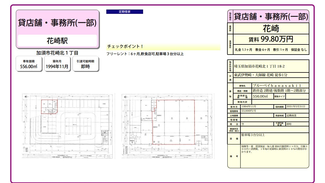 | 備考 | 飲食店可 条件交渉ご相談ください。 |